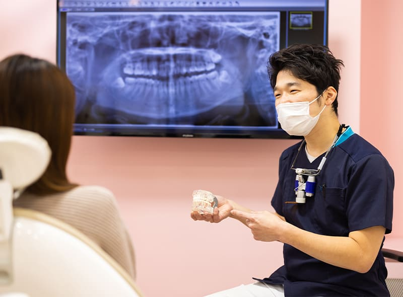 当院は、患者さんが歯科クリニックに対して不安に思いそうなことを、まずは解決したいと考えております。患者さんの不安や悩みを解消された後、こんな綺麗な口元を実現したい、正しい噛み合わせで美味しくご飯が食べたいなど、希望されることについて、お話を聞かせていただきます。