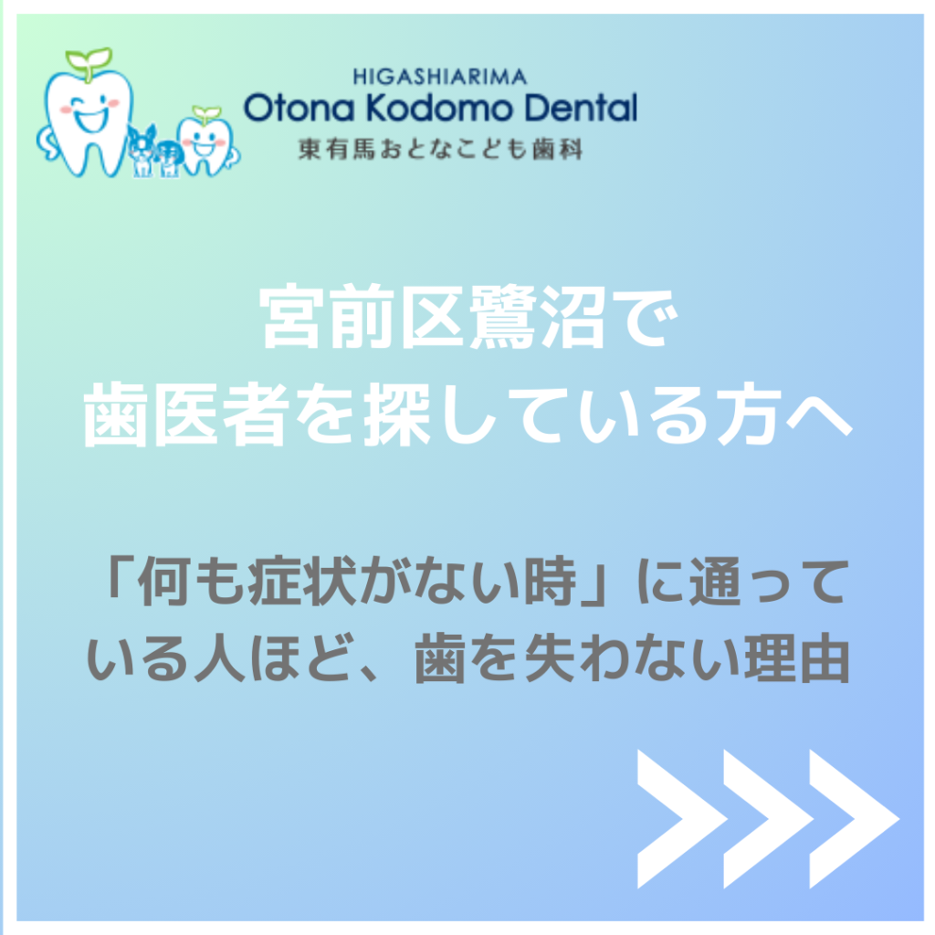 宮前区鷺沼で歯医者を探している方へ 「何も症状がない時」に通っている人ほど、歯を失わない理由